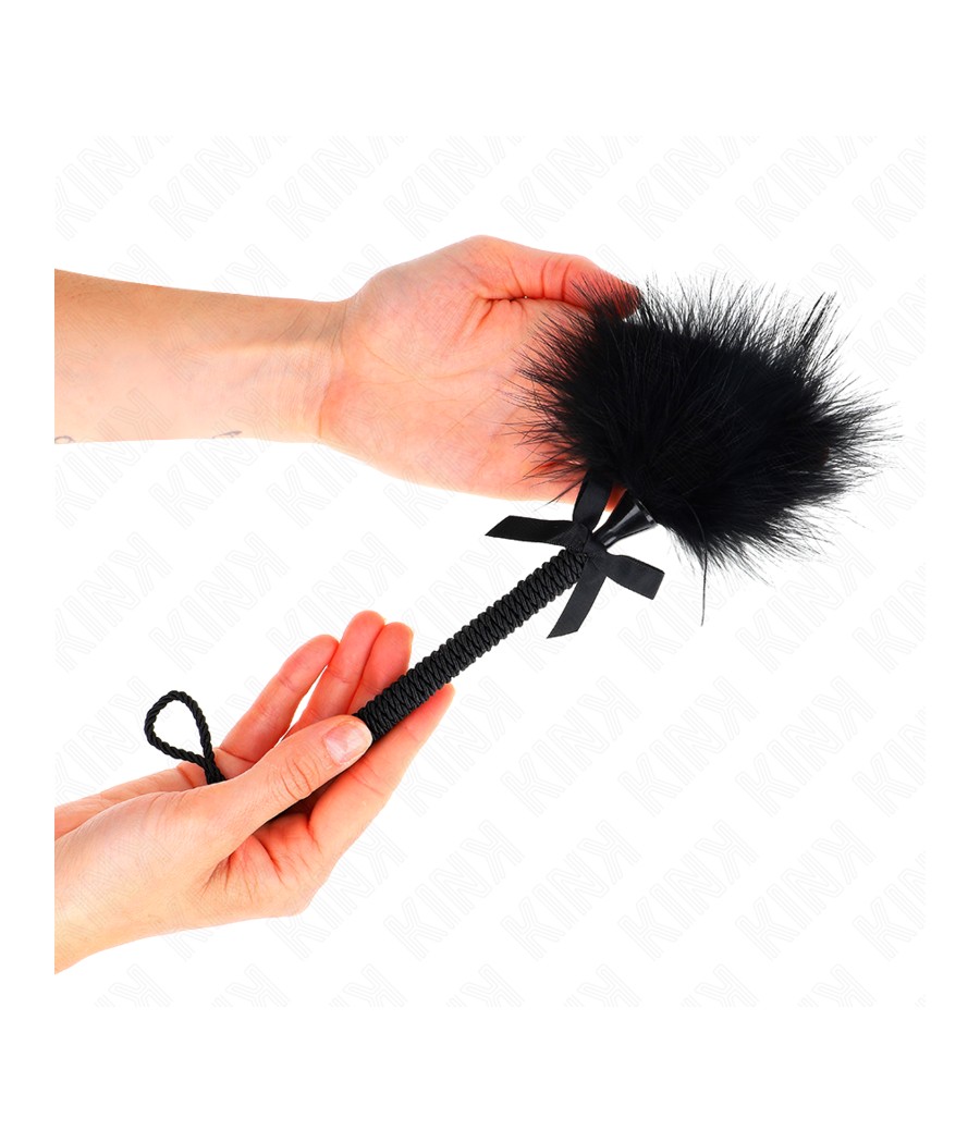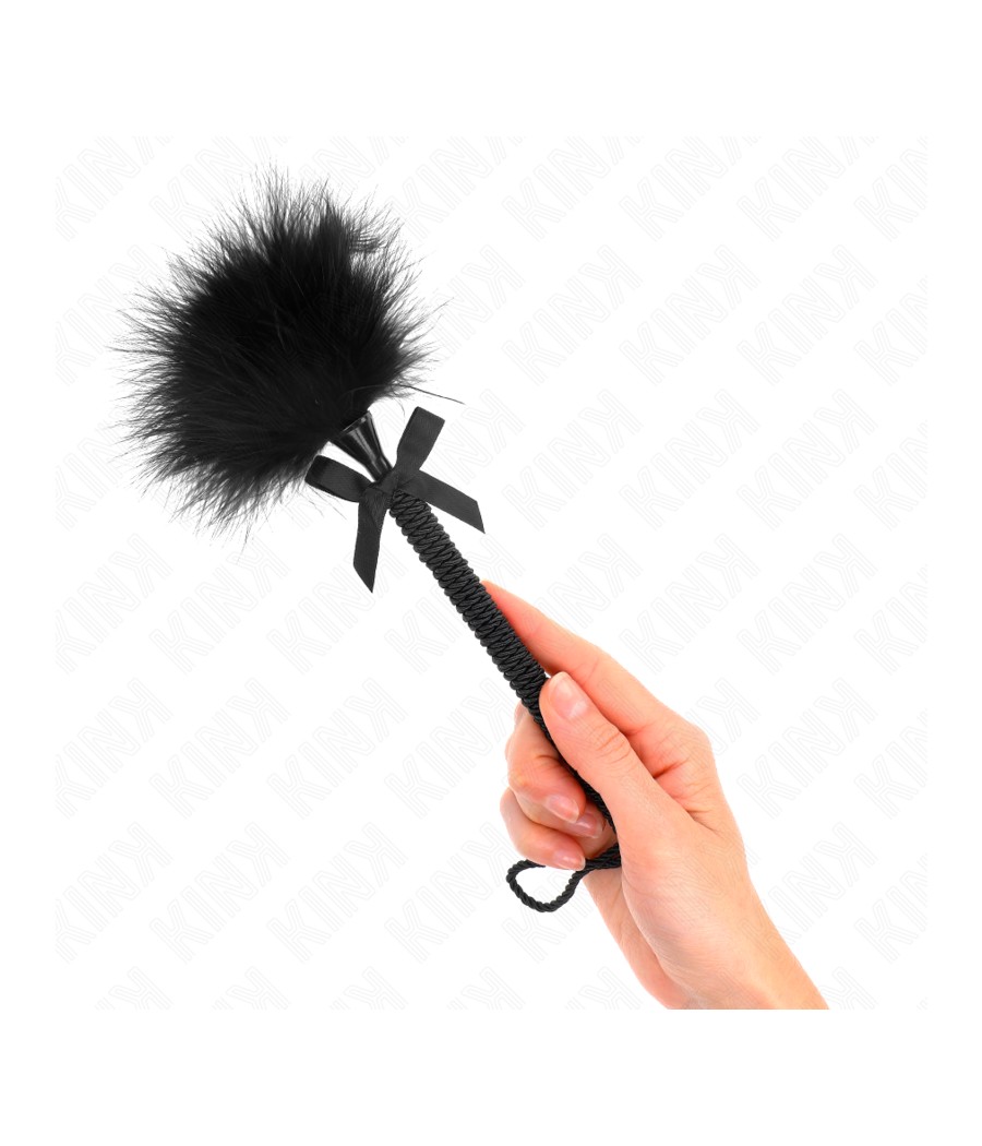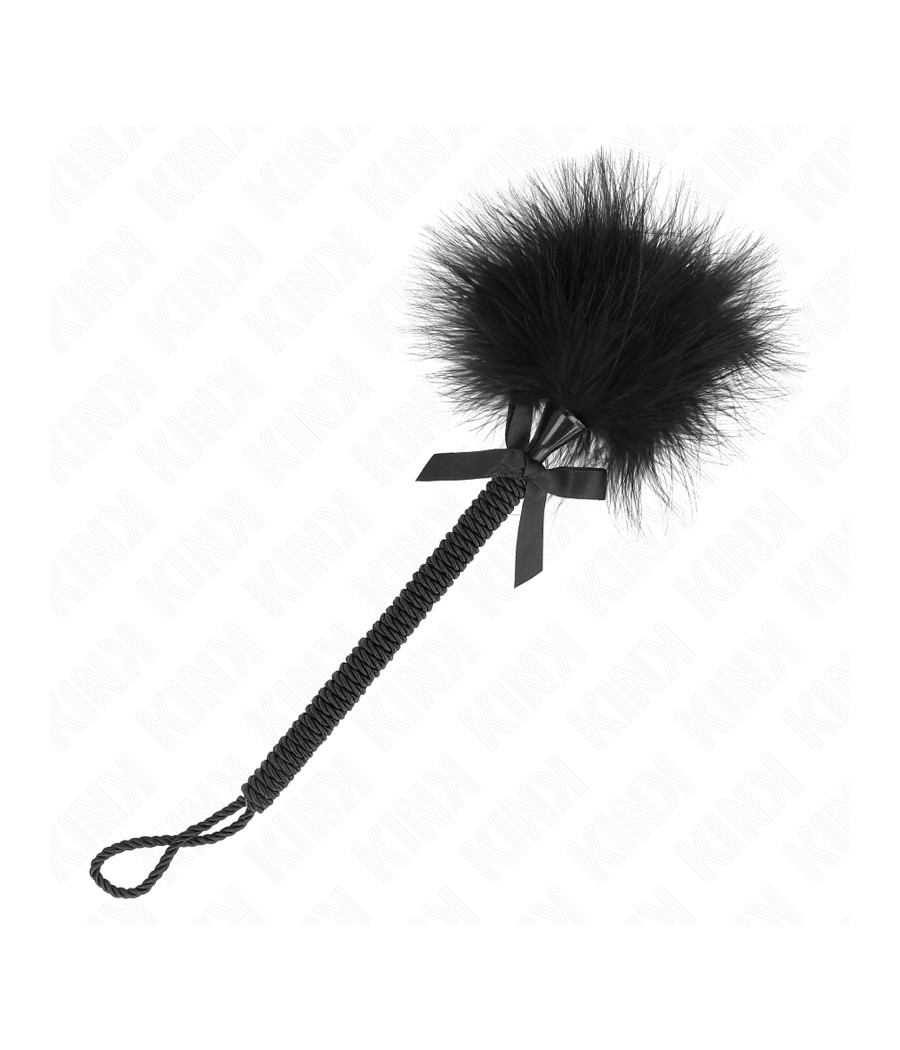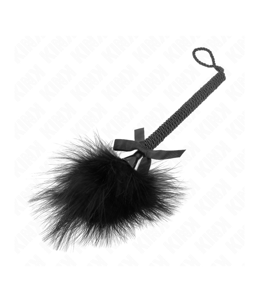 KINK - Baguette en corde de nylon avec plumes chatouillantes et noeud noir 25 cm