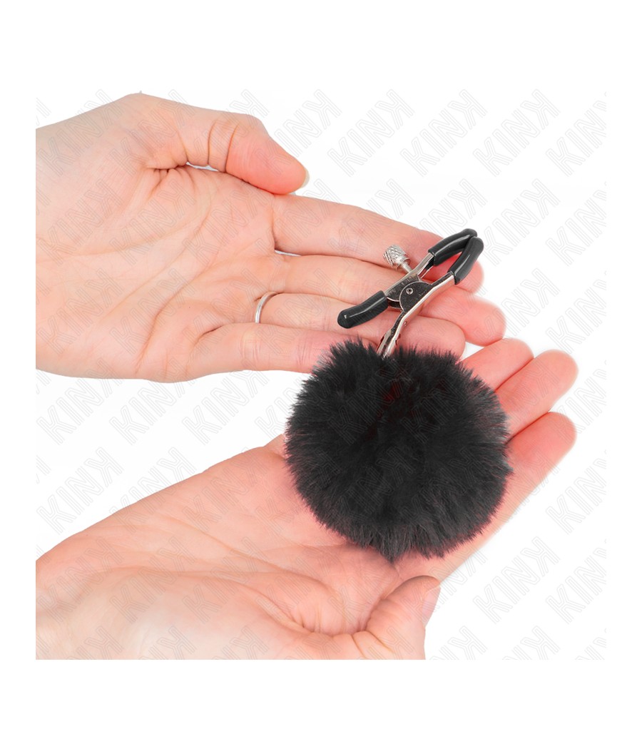 KINK - PINCE A METON BOULE EN FAUSSE FOURRURE NOIR 6 CM
