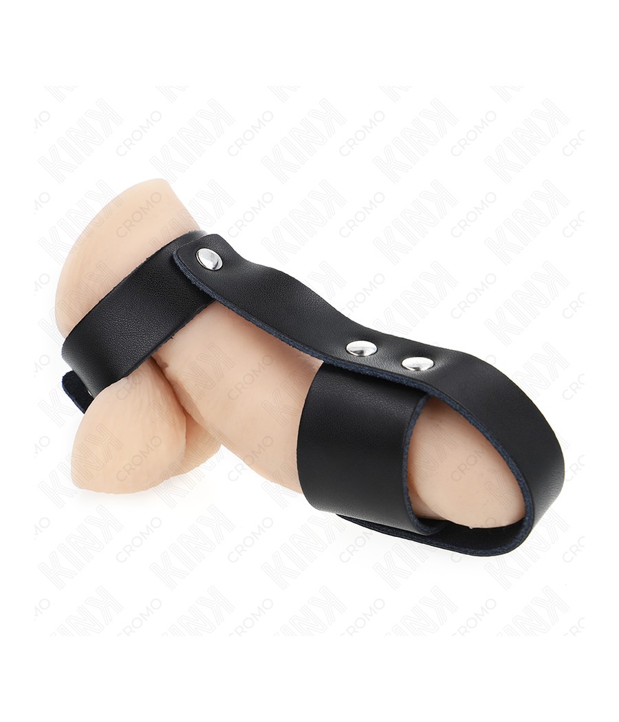 KINK - ANNEAU DE CAGE À PÉNIS EN CUIR AVEC SÉPARATEUR DE BALLES RÉGLABLE