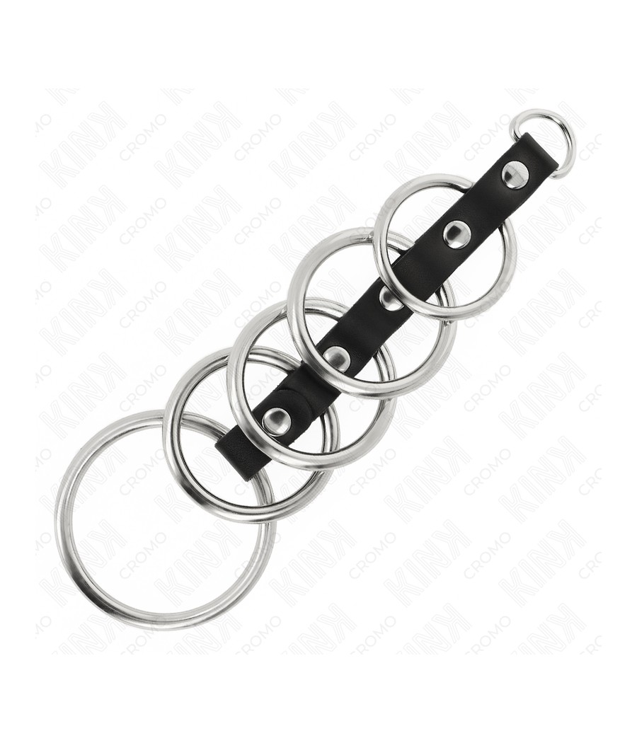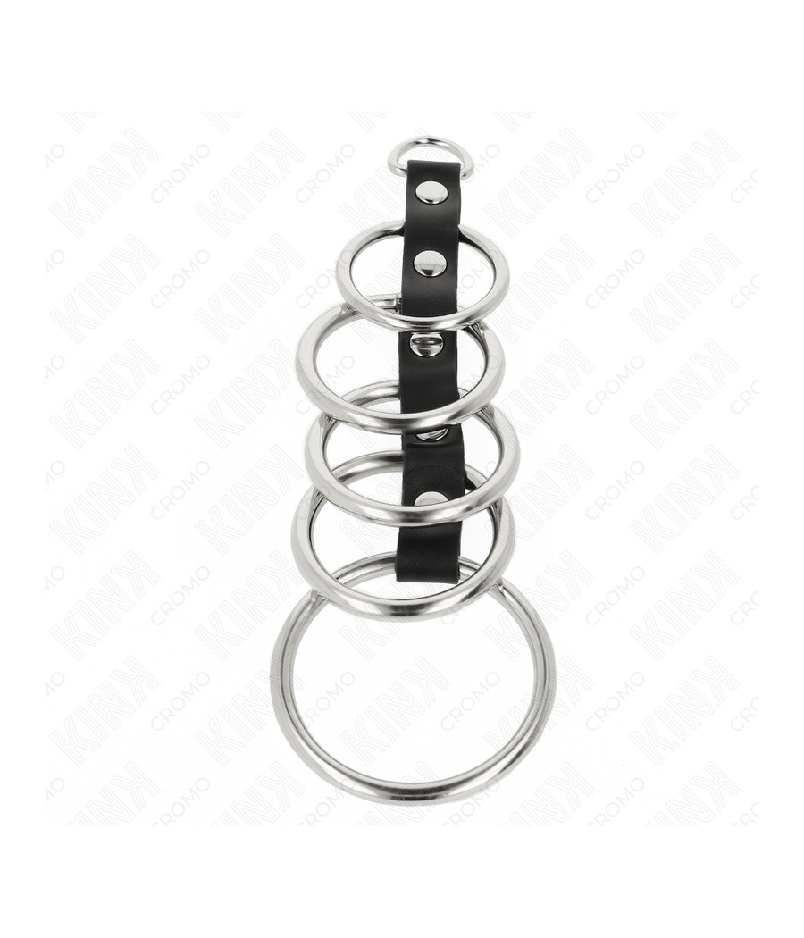 KINK - 5 ANNEAUX PÉNIS EN MÉTAL DE 3,2 CM À 5 CM CONNECTÉS PAR DU CUIR