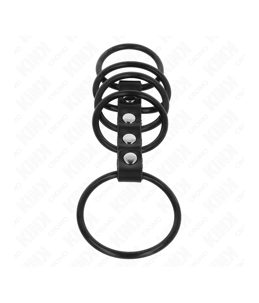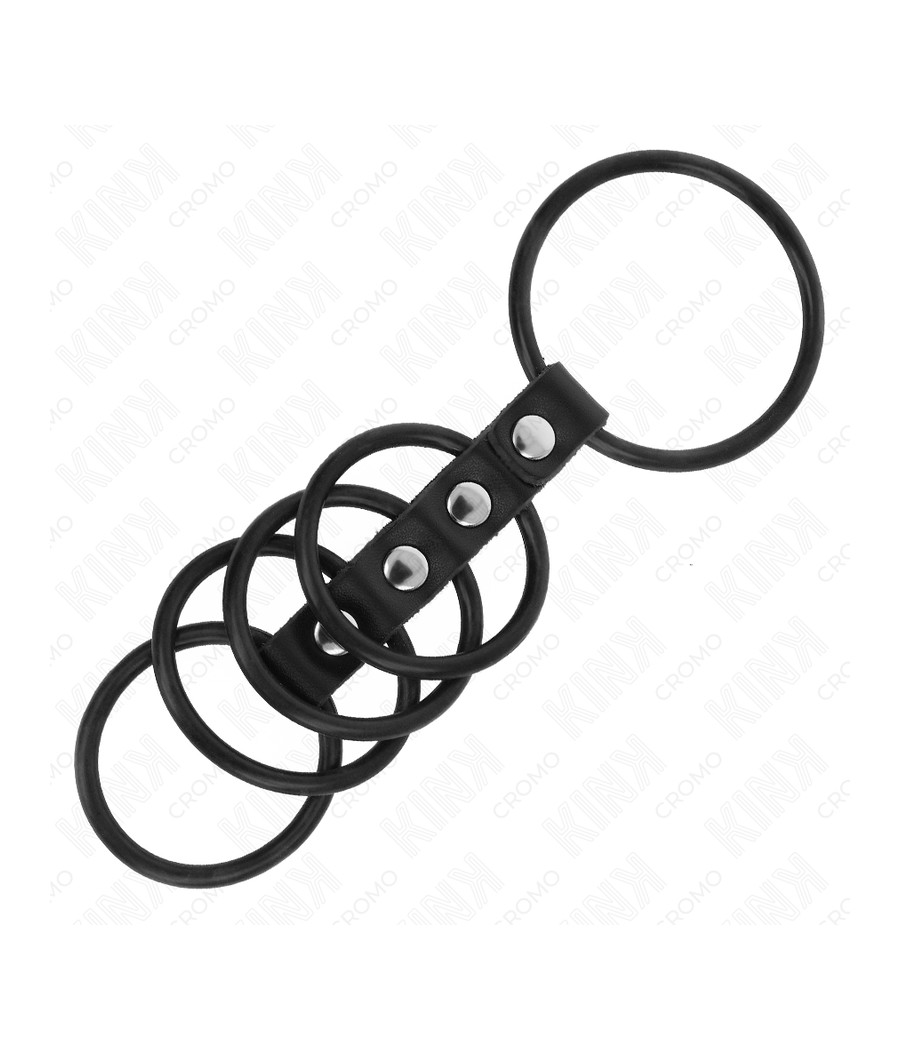 KINK - 5 ANNEAUX PÉNIS EN SILICONE DE 3,8 CM À 4,8 CM CONNECTÉS PAR DU CUIR