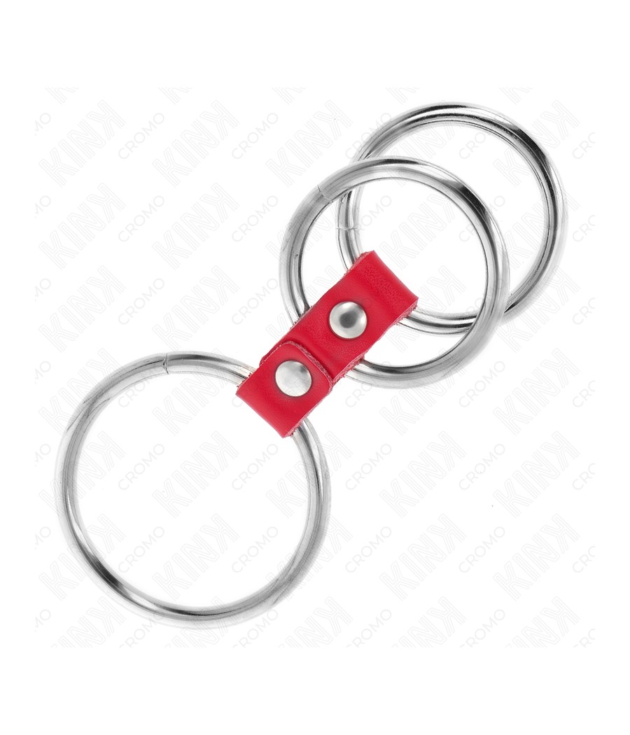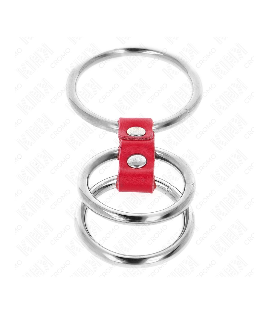 KINK - ANNEAU PÉNIS TRIPLE MÉTAL 3,7 CM À 5 CM CONNECTÉ AVEC DU CUIR ROUGE