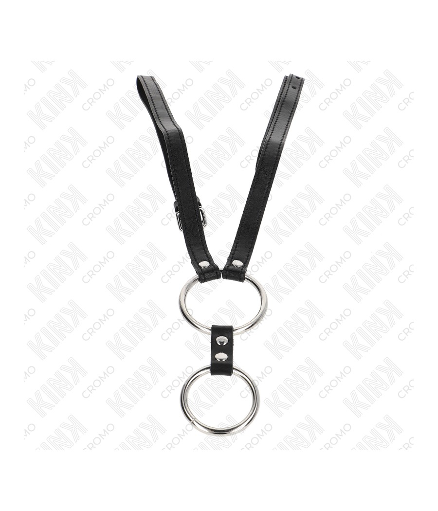 KINK - DOUBLE ANNEAU PÉNIS EN MÉTAL 3,8 CM À 5 CM AVEC CEINTURE EN CUIR 112 CM