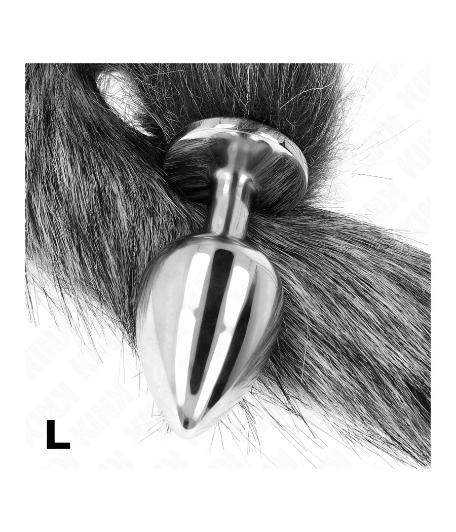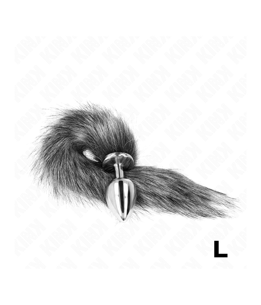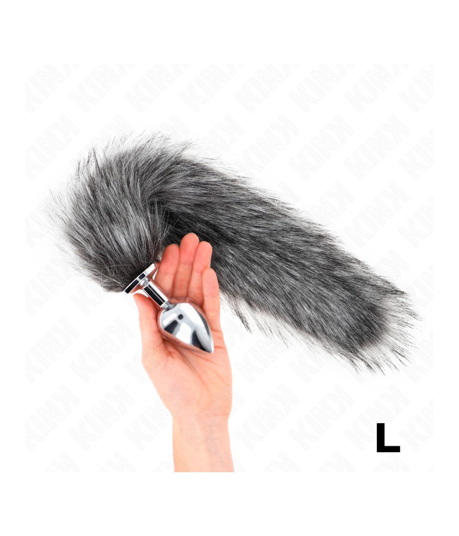 KINK - PLUG ANAL TAILLE L 10 X 4 CM AVEC QUEUE SYNTHÉTIQUE 40 CM GRIS