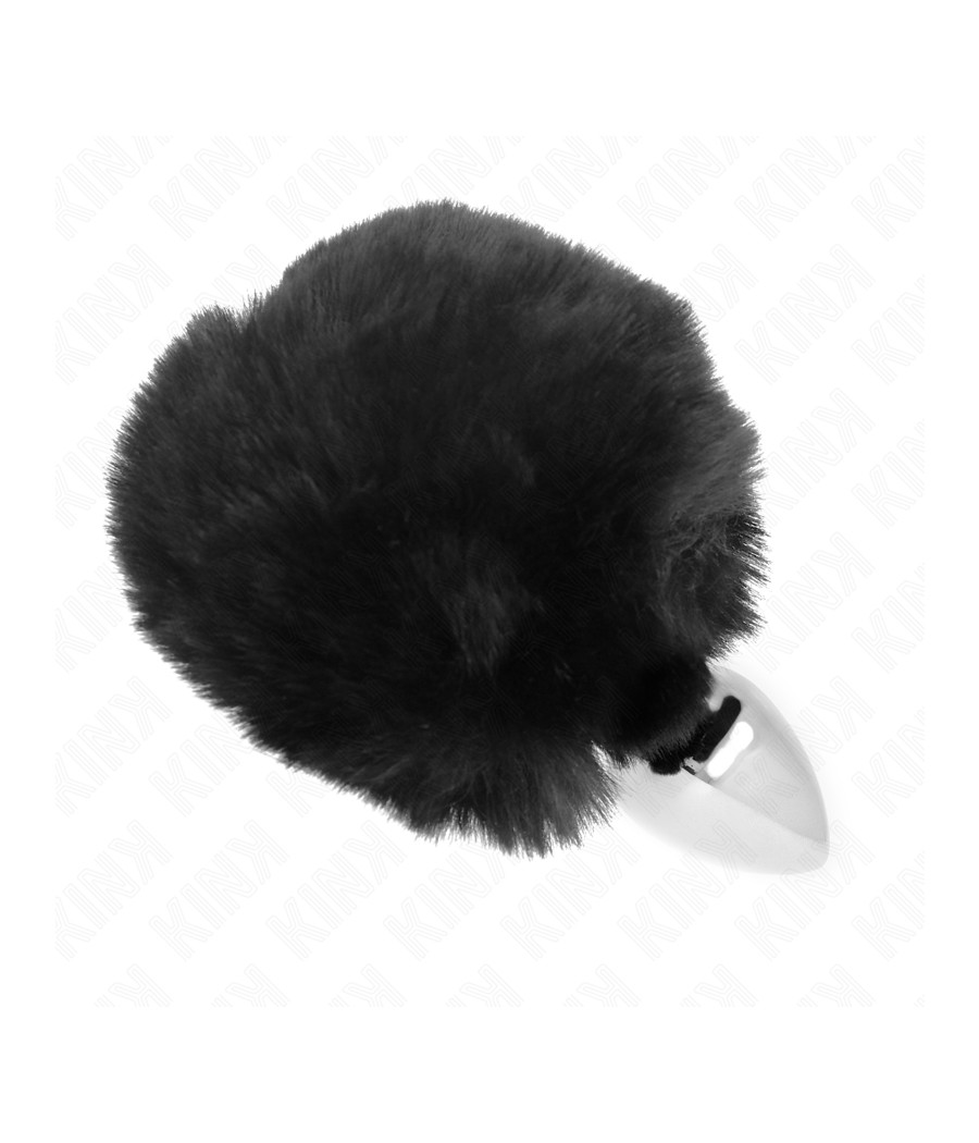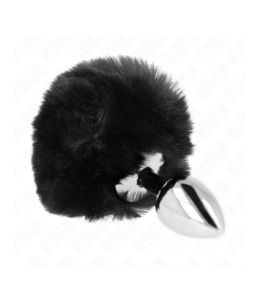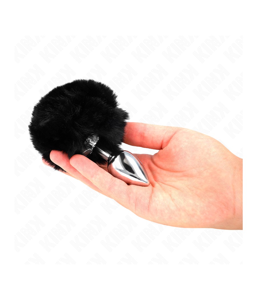 KINK - BOUCHON EN ACIER INOXYDABLE 7 x 3 CM AVEC QUEUE DE LAPIN EN FAUSSE FOURRURE NOIRE 8 CM