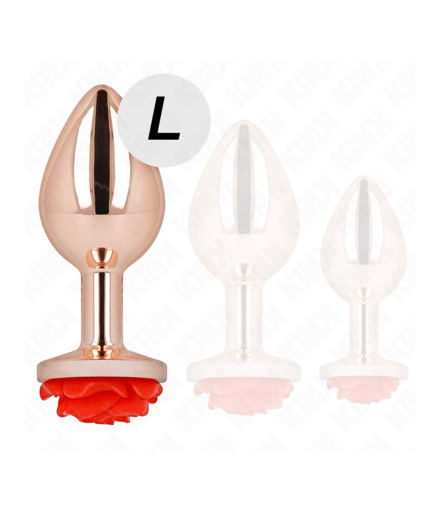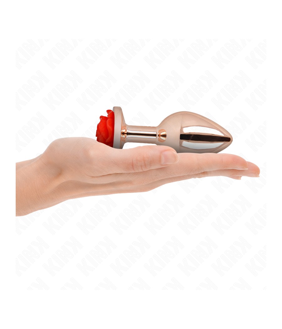Plug anal en métal or rose avec ornement de rose rouge - Élégant, lisse et sensuel
