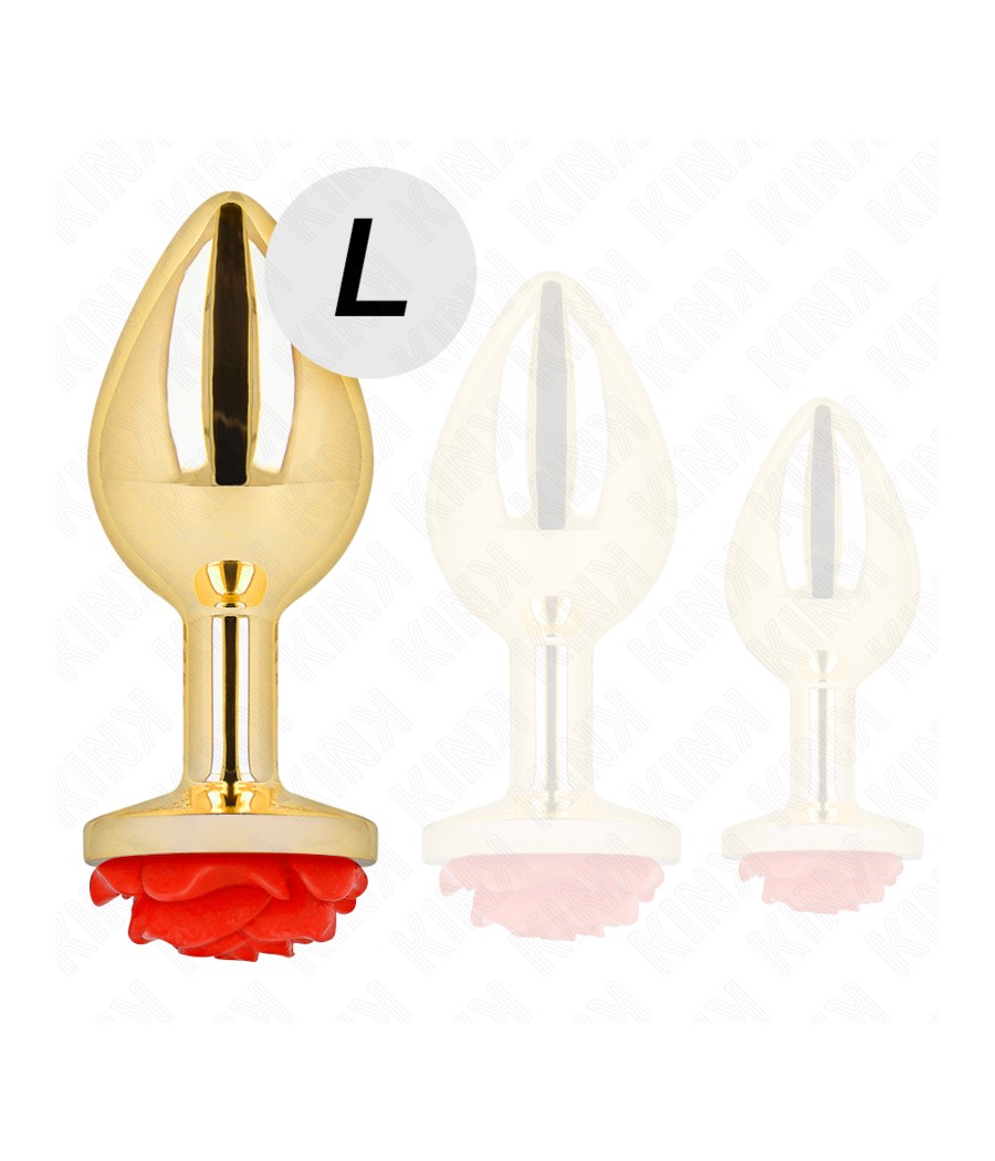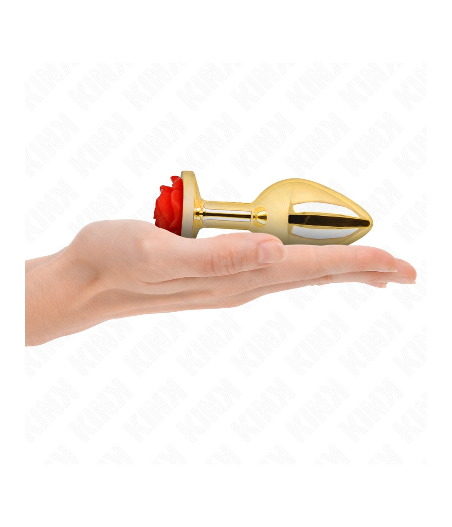 Plug anal doré avec décoration de rose rouge - lisse, élégant et agréable