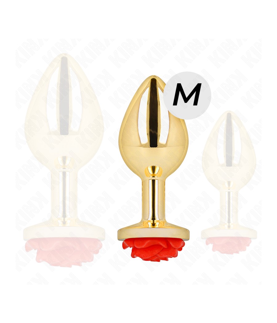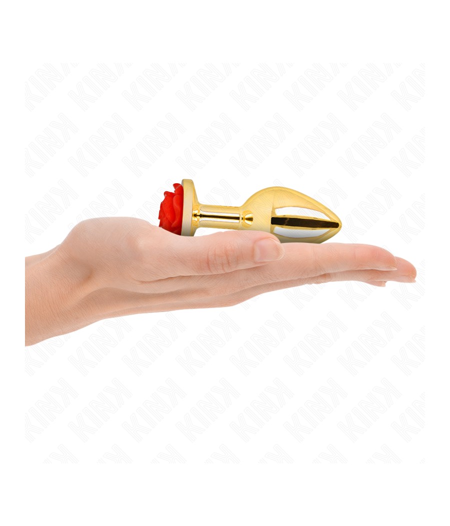 Plug anal doré avec décoration de rose rouge - lisse, élégant et agréable