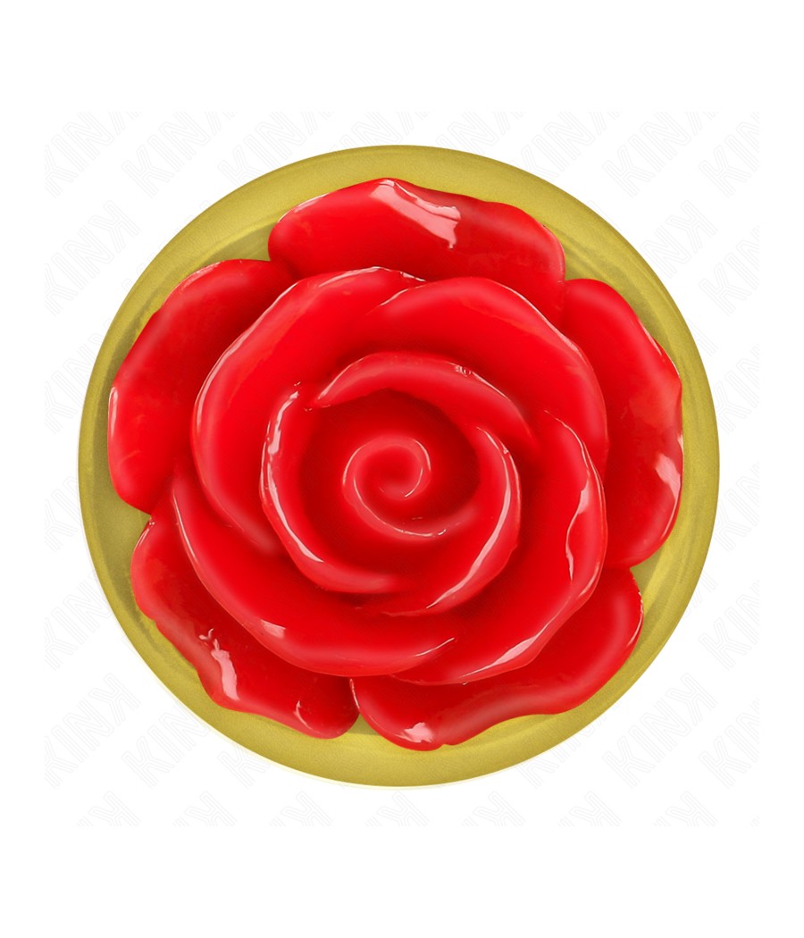 Plug anal doré avec décoration de rose rouge - lisse, élégant et agréable