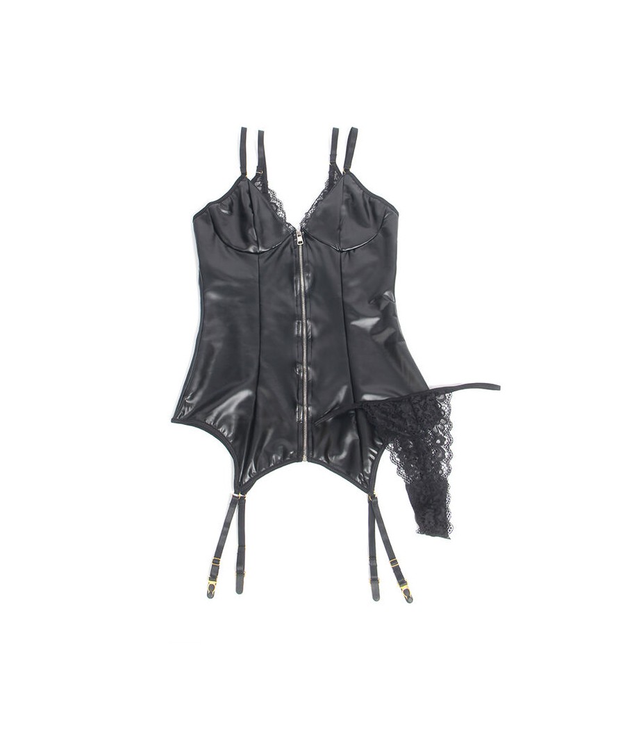 Découvrez la sensualité à son paroxysme avec l39ensemble de lingerie SUBBLIME en dentelle noire avec finition en cuir PU, porte-jarretelles et fermeture éclair. Cette pièce est conçue pour les femmes à la recherche d39un look audacieux, sophistiqué et confiant. Son association de dentelle délicate avec la finition brillante et audacieuse du cuir PU crée un équilibre parfait entre élégance et provocation, idéal pour des nuits mémorables.