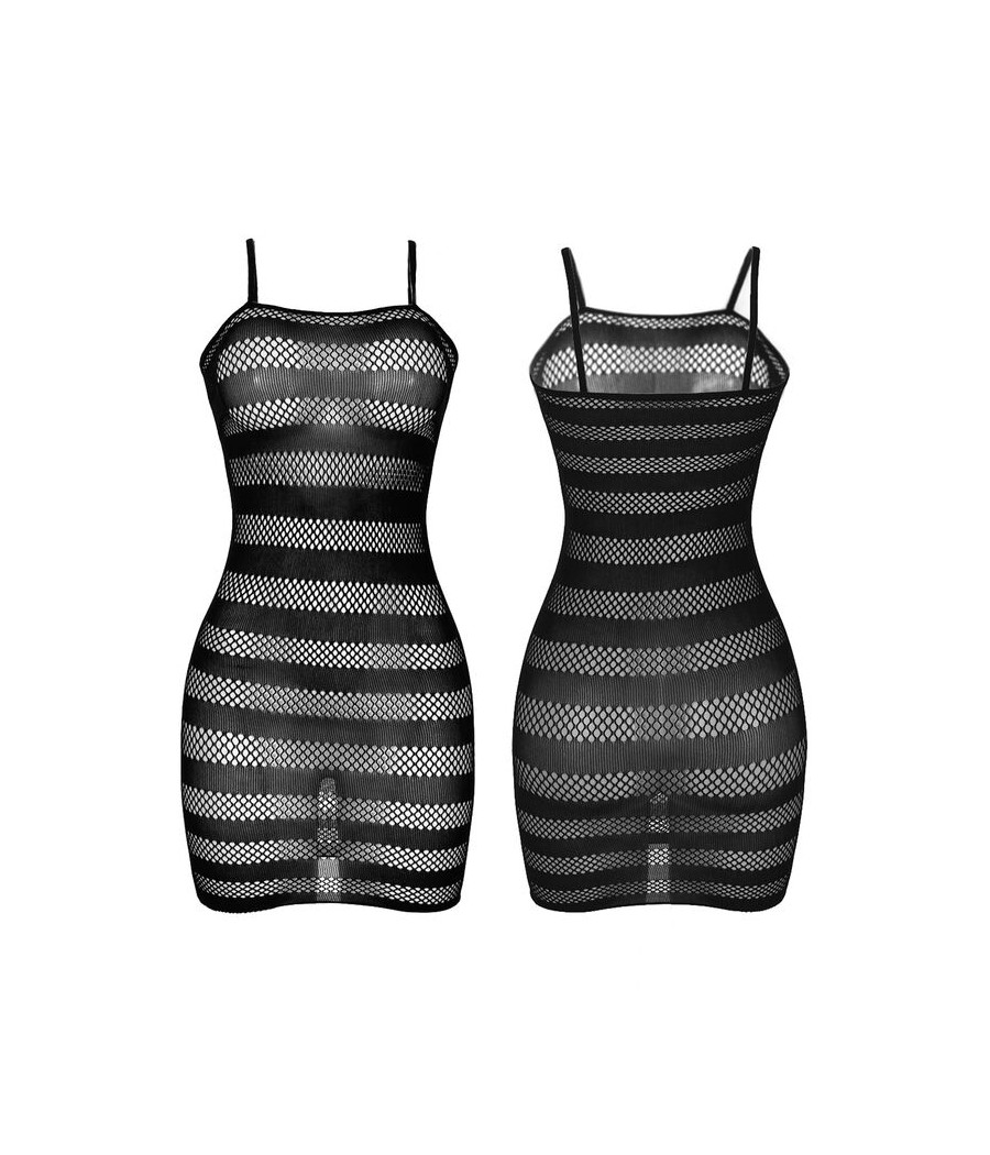 • Style : Bodystocking résille noir avec motif rayé.