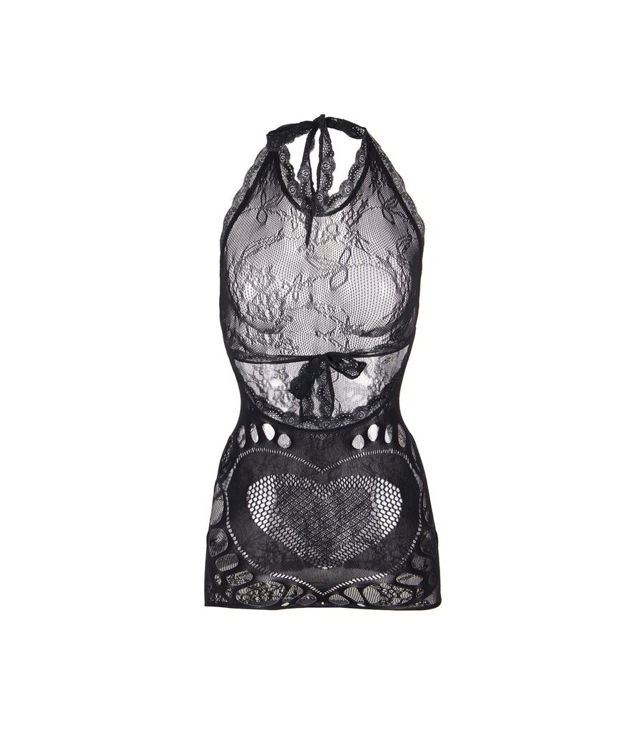 SUBBLIME - 952075 ROBE COURTE EN RÉSILLE AVEC DÉTAIL DOS ET COEUR NOIR TAILLE UNIQUE