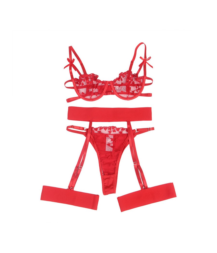 SUBBLIME - 954321 SOUTIEN-GORGE + STRING + PORTE-JARRETELLES IMPRIMÉ COEUR ROUGE S/M