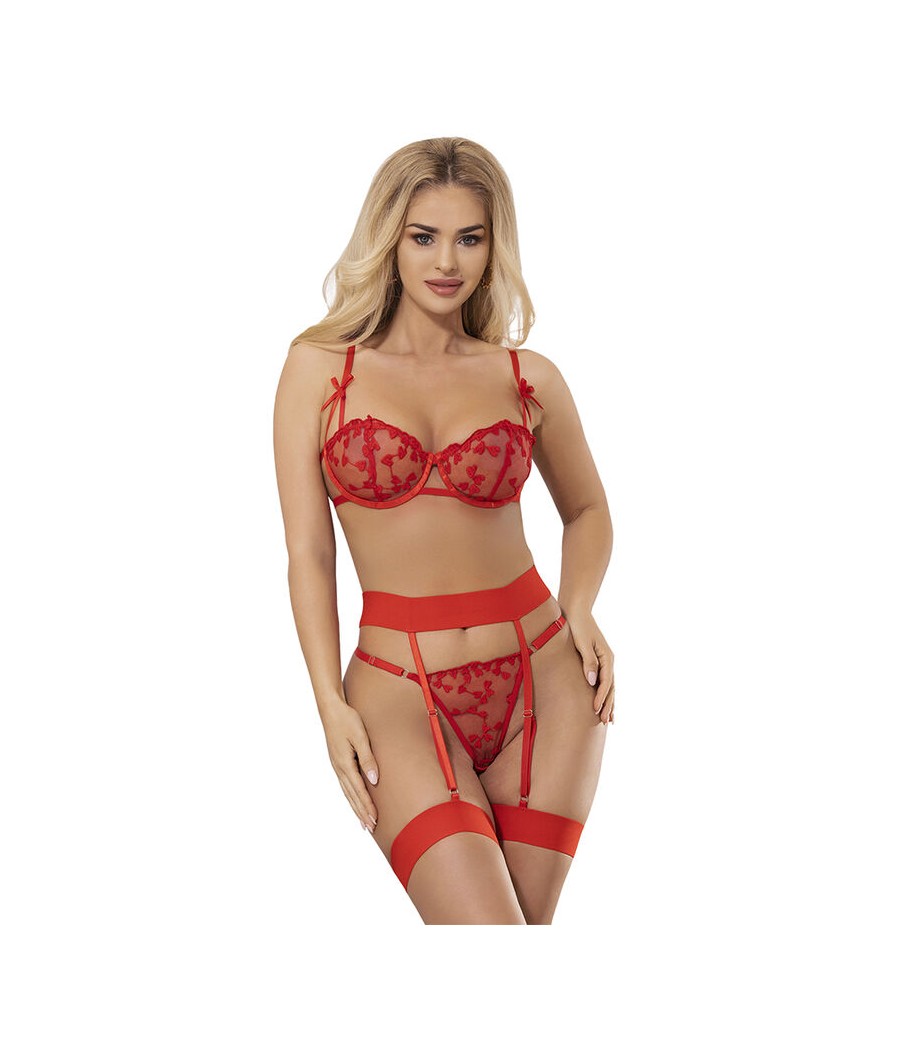SUBBLIME - 954338 SOUTIEN-GORGE + STRING + PORTE-JARRETELLES IMPRIMÉ COEUR ROUGE L/XL