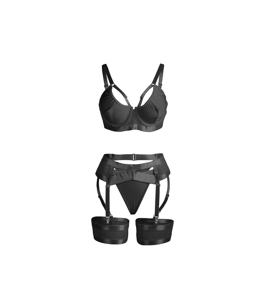 L'ensemble de lingerie style bondage noir SUBBLIME avec porte-jarretelles et soutien-gorge est la combinaison parfaite de sensualité et d'élégance. Osez être le centre d'attention et sentez-vous incroyable dans chaque détail.