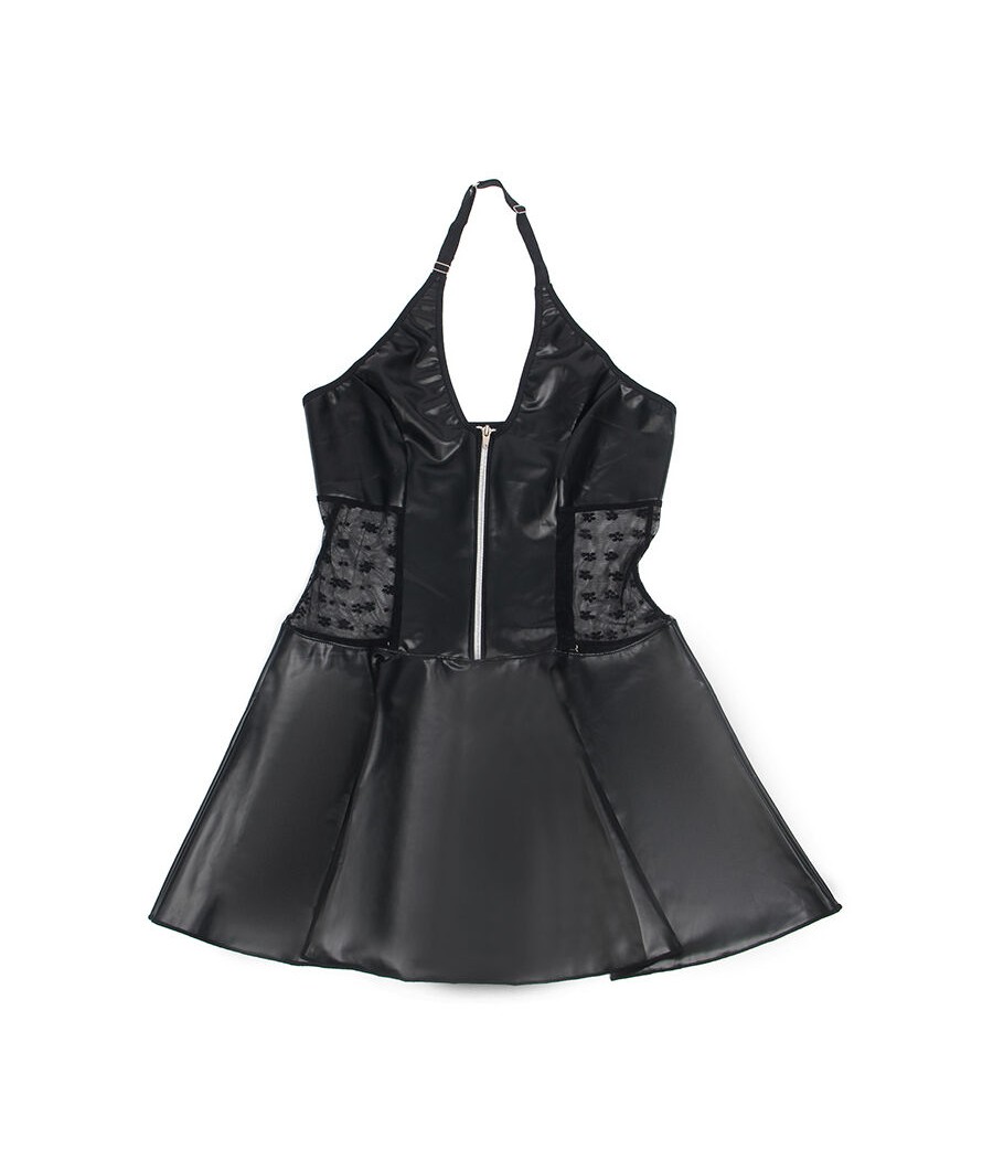 Fabriquée à partir d'un mélange de 95% de polyester et de 5% d'élasthanne/élasthanne, cette chemise de nuit s'adapte parfaitement au corps, offrant un effet moulant et flatteur sans sacrifier le confort. Son tissu effet vinyle ajoute une touche rebelle et sophistiquée, idéale pour se démarquer lors d'une soirée spéciale.