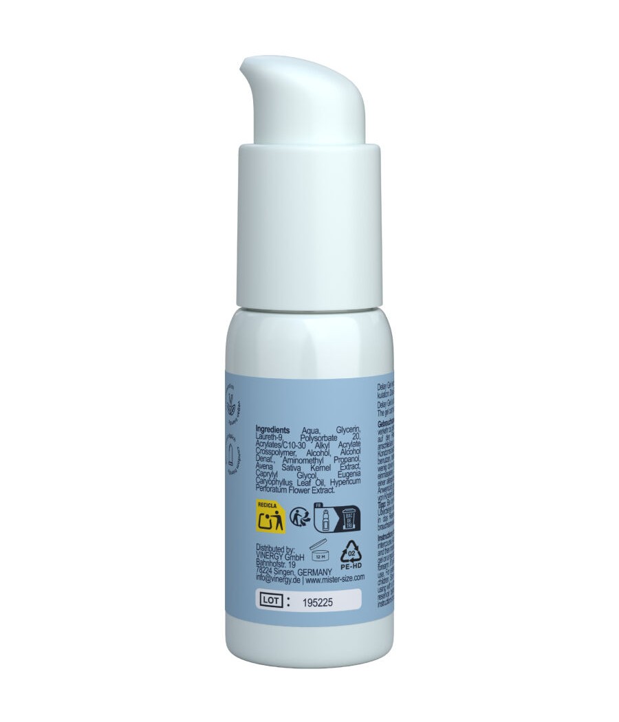 Le gel retardateur Mister Size a été spécialement conçu pour celles qui souhaitent prolonger le plaisir et vivre des expériences intimes plus intenses et durables. Sa formule innovante, enrichie en huile de clou de girofle et en Laureth-9, associe un effet rafraîchissant doux à des ingrédients apaisants pour retarder l'orgasme de manière naturelle et efficace.