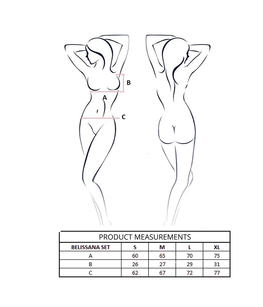 L39ensemble BELISSANA allie sensualité et élégance moderne, conçu pour les femmes qui apprécient la beauté subtile et le luxe dans les moindres détails. Entièrement confectionné en polyamide transparent et délicat, il séduit par sa légèreté et sa délicatesse, tout en sublimant la beauté naturelle du corps.