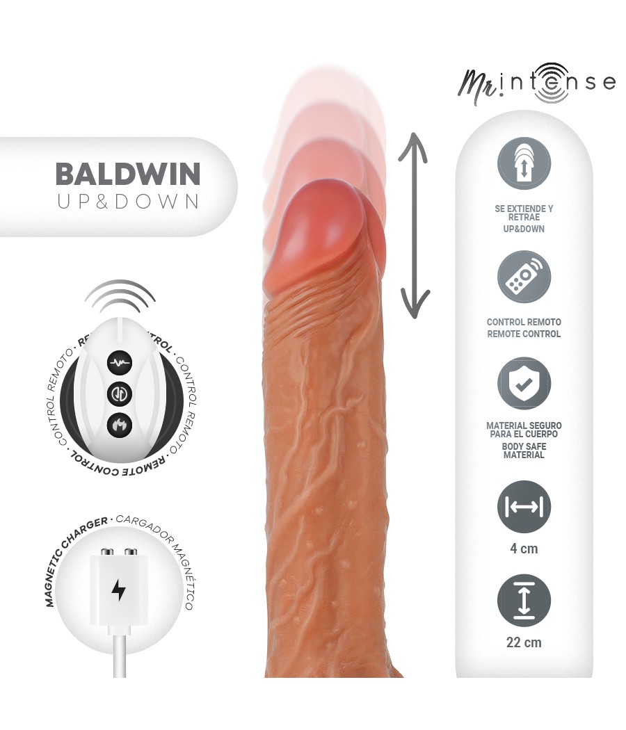 Laissez-vous emporter par une expérience intense et réaliste avec BALDWIN , le godemichet star de la collection MR INTENSE. Conçu pour les amateurs de plaisir puissant et profond, ce vibromasseur réaliste allie une esthétique hyperréaliste à une mécanique interne simulant le mouvement naturel des poussées verticales (Up Down) pour des sensations totalement immersives. Avec une tige flexible de 22 cm de longueur totale, dont 15 cm insérables, et un diamètre moyen de 4 cm, BALDWIN offre une présence solide et satisfaisante sans compromettre le confort. Son corps est recouvert de silicone ultra-doux, de haute qualité et sans danger pour le corps, au toucher soyeux qui imite la peau.