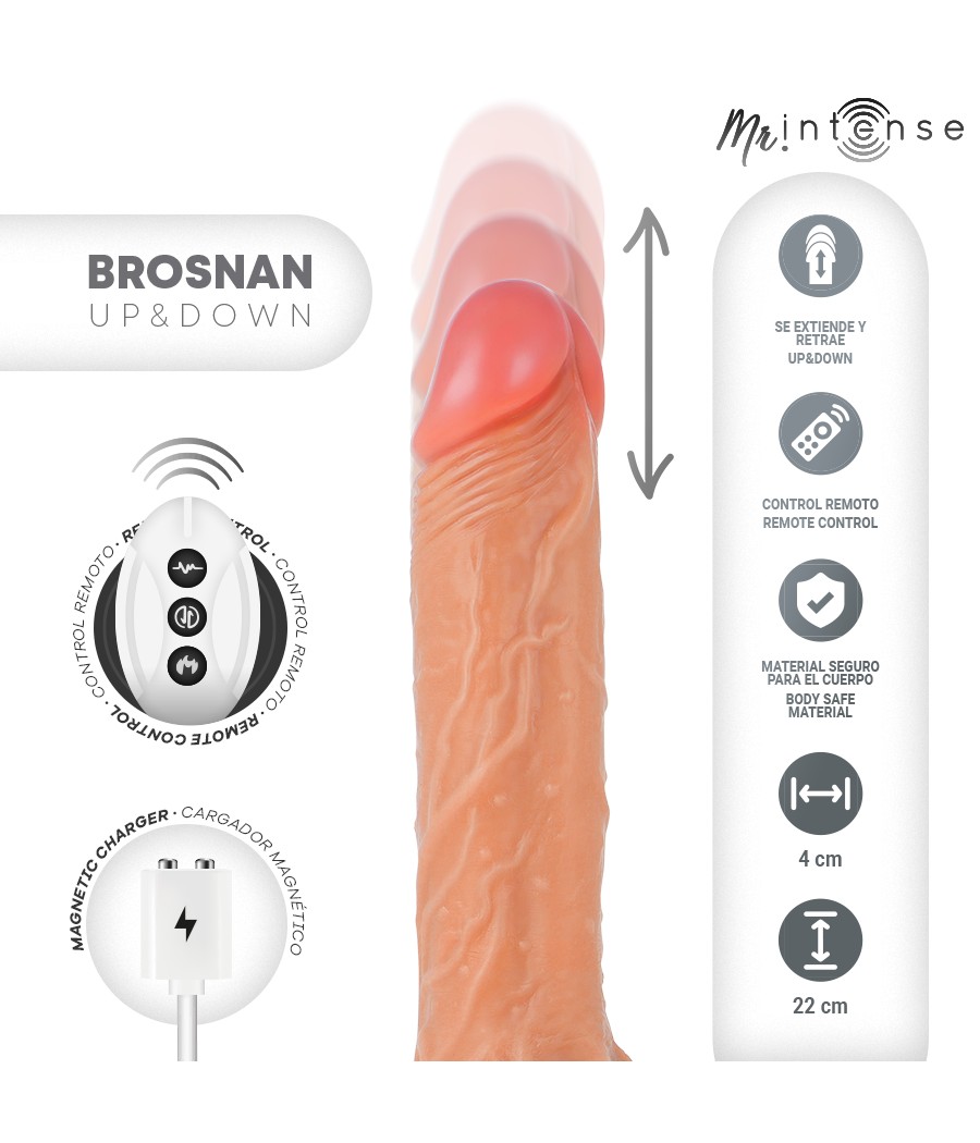 Laissez-vous emporter par une expérience intense et réaliste avec BROSNAN , le godemichet star de la collection MR INTENSE. Conçu pour les amateurs de plaisir puissant et profond, ce vibromasseur réaliste allie une esthétique hyperréaliste à une mécanique interne simulant le mouvement naturel des poussées verticales (Up Down) pour des sensations totalement immersives. Avec une tige flexible de 22 cm de longueur totale, dont 15 cm insérables, et un diamètre moyen de 4 cm, BROSNAN offre une présence solide et satisfaisante sans compromettre le confort. Son corps est recouvert de silicone ultra-doux, de haute qualité et sans danger pour le corps, au toucher soyeux qui imite la peau.