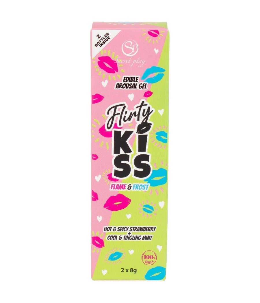 Le sexe oral et les préliminaires sont déjà excitants, mais avec une petite touche en plus, ils peuvent devenir vos moments préférés. Flirty Kiss se compose de deux gels : un gel à la fraise pour une sensation de chaleur épicée et un gel à la menthe pour une fraîcheur vivifiante. Ils sont parfaits pour une utilisation à deux. Lun des partenaires profitera de la chaleur envoûtante de la fraise et de son effet épicé stimulant, tandis que lautre ressentira la fraîcheur vivifiante de la menthe. Une explosion de sensations pour des baisers et des moments de sexe oral inoubliables.