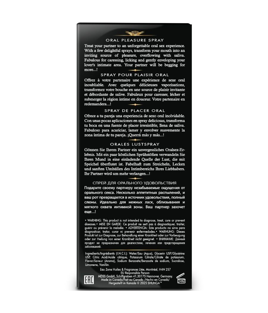 Offrez à votre partenaire une expérience de sexe oral inoubliable. En quelques vaporisations, transformez votre bouche en une source irrésistible de plaisir salivaire. Idéal pour caresser, lécher et envelopper délicatement la zone intime de votre partenaire. Il/Elle en redemandera !